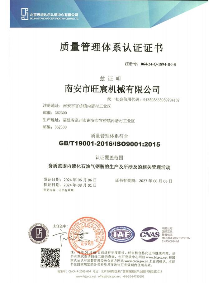 質(zhì)量管理體系認(rèn)證證書(shū)